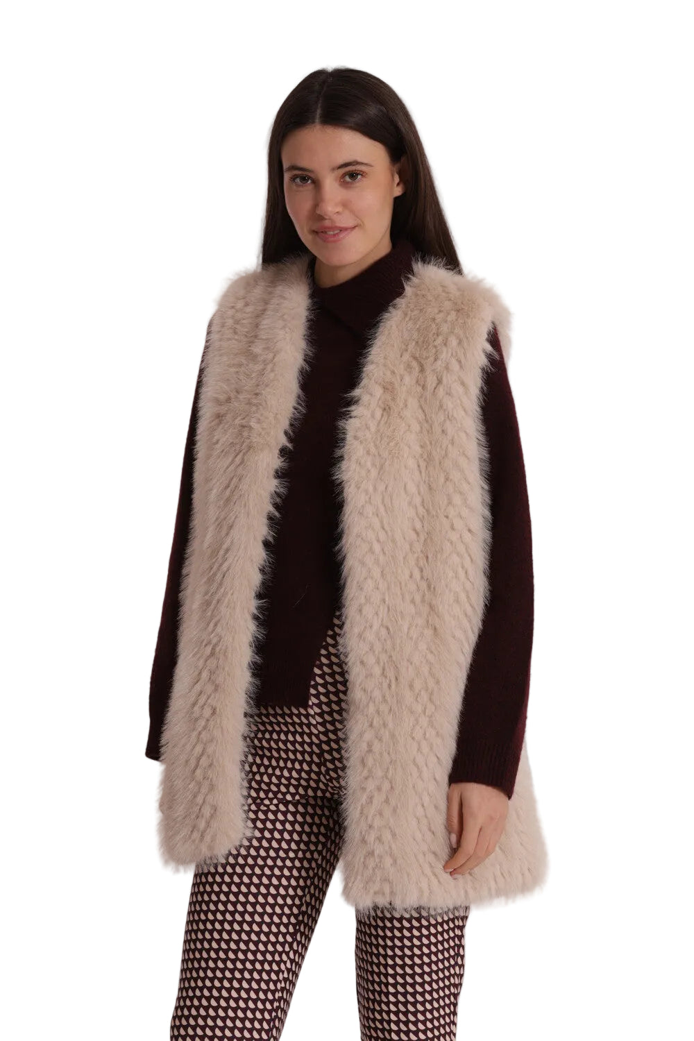 Gilet Lungo Effetto Montone Donna - Senza Maniche Elegante YQAN-6569