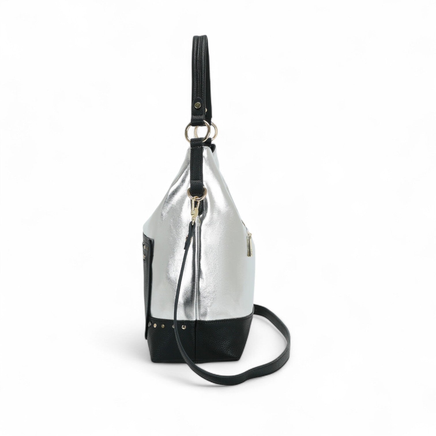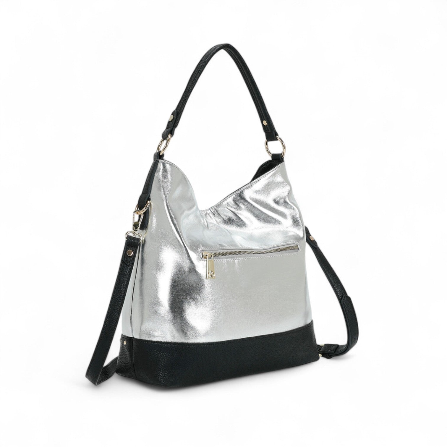 Questa borsa a sacca è l'accessorio perfetto per la donna moderna che non vuole rinunciare allo stile. Il suo effetto laminato aggiunge un tocco glamour a qualsiasi outfit, mentre la forma a sacca garantisce praticità e comfort durante tutto il giorno.