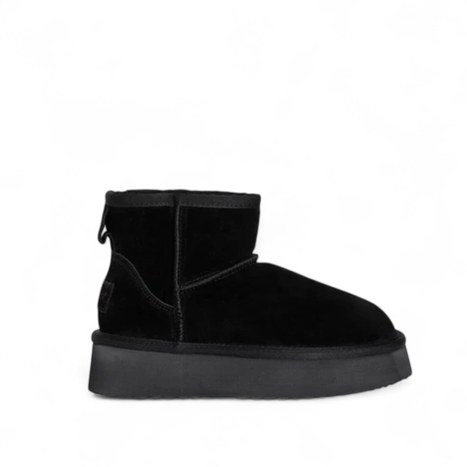 Suede ankle boots with faux fur interior. 40mm high sole. Metal café logo on the back of the shoe.