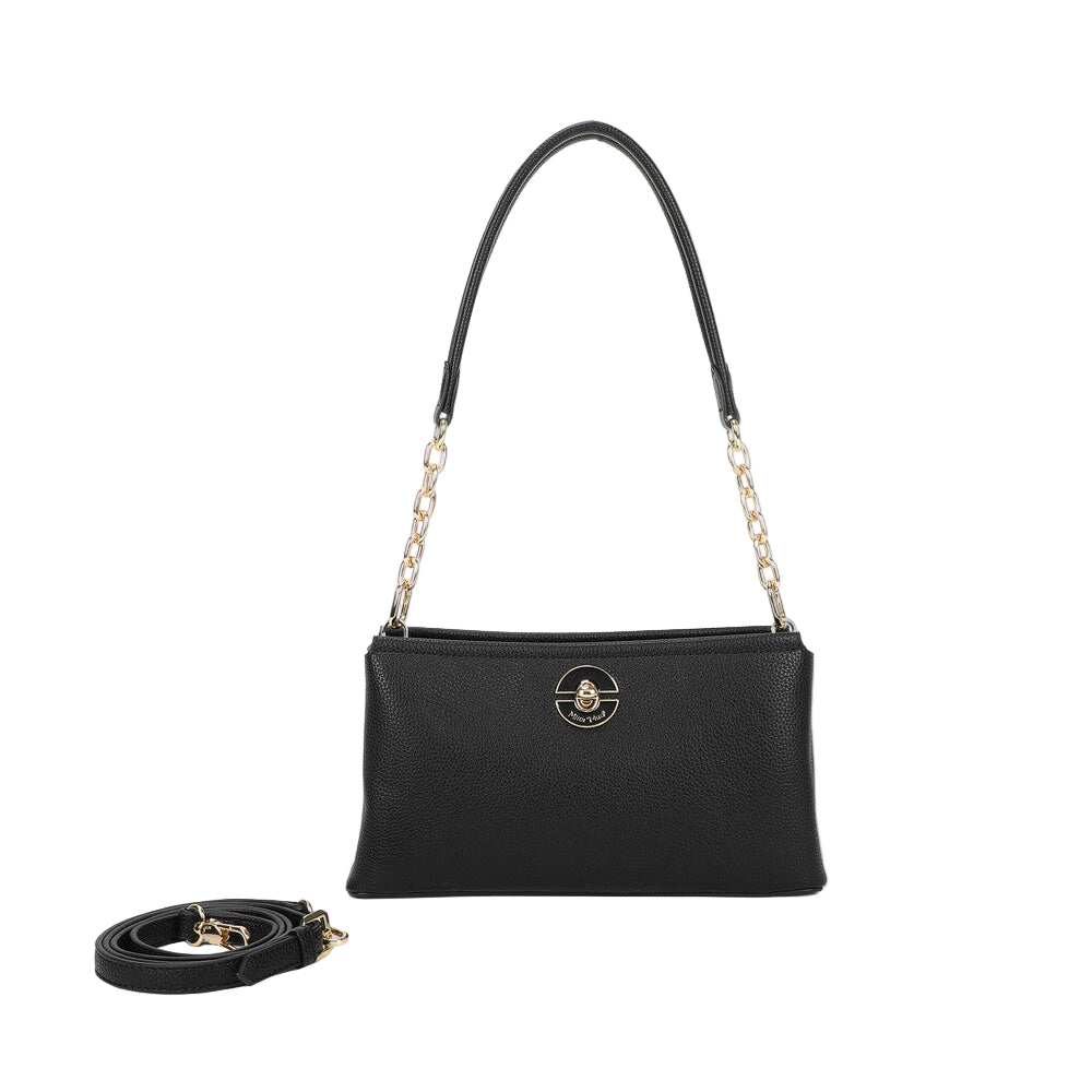 BORSA A TRACOLLA CON CHIUSURA VERNICIATA IN TINTA